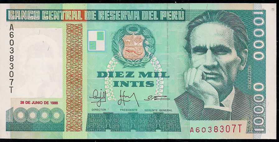 10000 peru money. The banco central de reserva del peru started issuing these 10000 peruvian sol banknotes in 1981. Back in 1991 when the current currency nuevo sol was introduced 1000000 intis were exchanged for 1 nuevo sol. The next year 1000 intis notes were added followed by 5000 and 10000 in 1988.