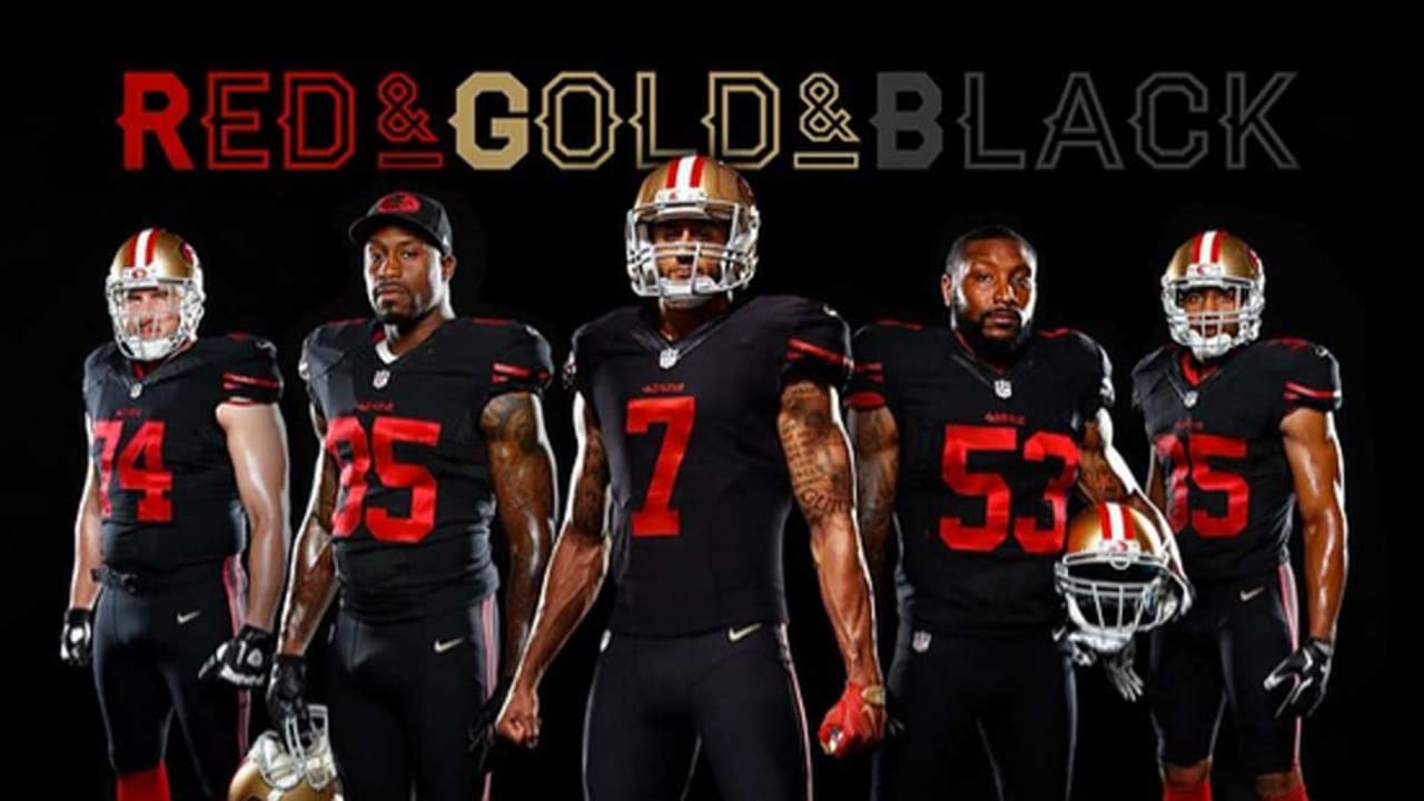 49ers all red uniforms. The 49ers changed uniform designs and color combinations quite often in their first eighteen years of existence. From the teams inception in 1946 through the early 1960s the san francisco 49ers usually wore red white or silver helmets white or light gray pants and cardinal red home and white road jerseys. Its a look thats so popular with the team they already.