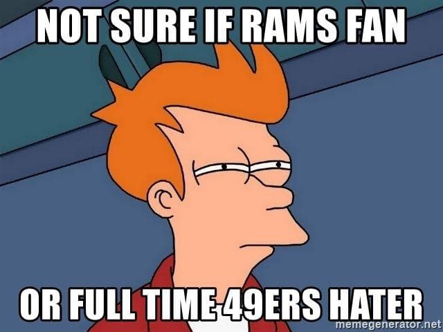 49ers beat rams memes. San francisco 49ers defense coordinator robert saleh didnt let aaron breathe even for a bit. See more ideas about 49ers 49ers memes 49ers fans. Sep 24 2018 explore glowjiras board 49ers meme followed by 1525 people on pinterest.
