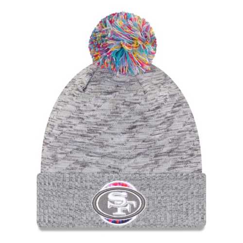 49ers crucial catch beanie. This crucial catch san francisco 49ers knit hat features a colorful removable pom and team emblem on front panels with a crucial catch logo on back and new era on side. In the spirit of the various cancer ribbon colors the sport knit features a vibrant tie dye patch at the front with an embroidered 49ers logo the official nfl crucial catch intercept cancer patch at the rear and a multicolor pom. Get san francisco 49ers hats at the official online store of the nfl.