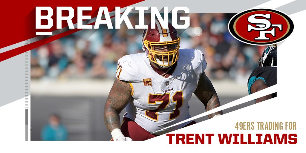 Saturday morning the 49ers acquired veteran left tackle trent williams in a trade with the washington redskins in.