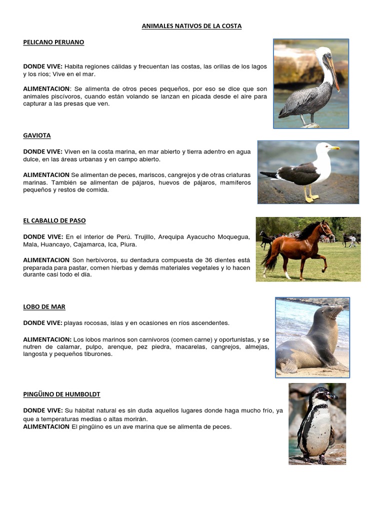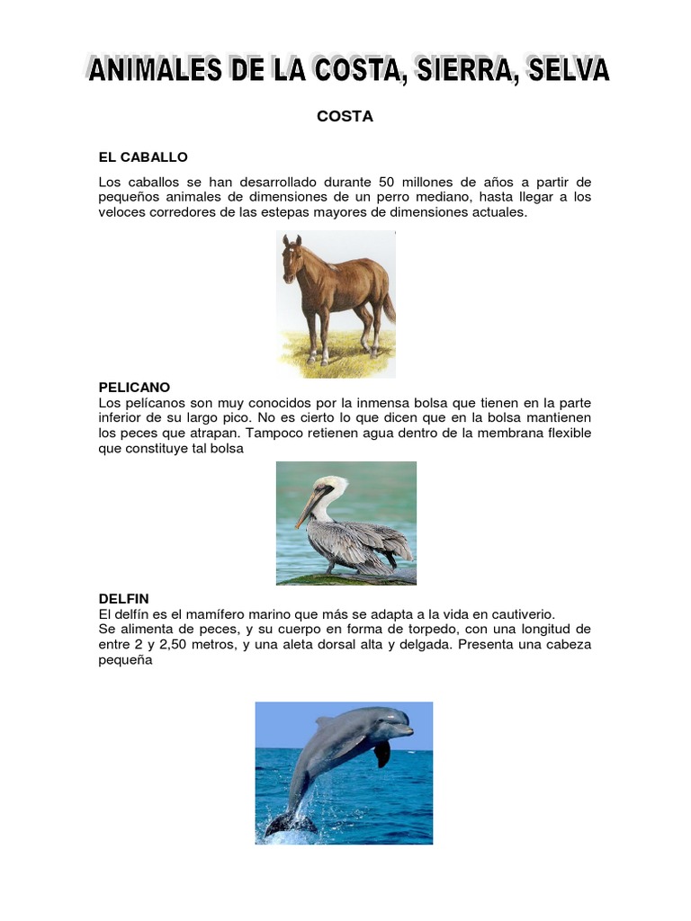 Animales Del Peru Costa Sierra Y Selva