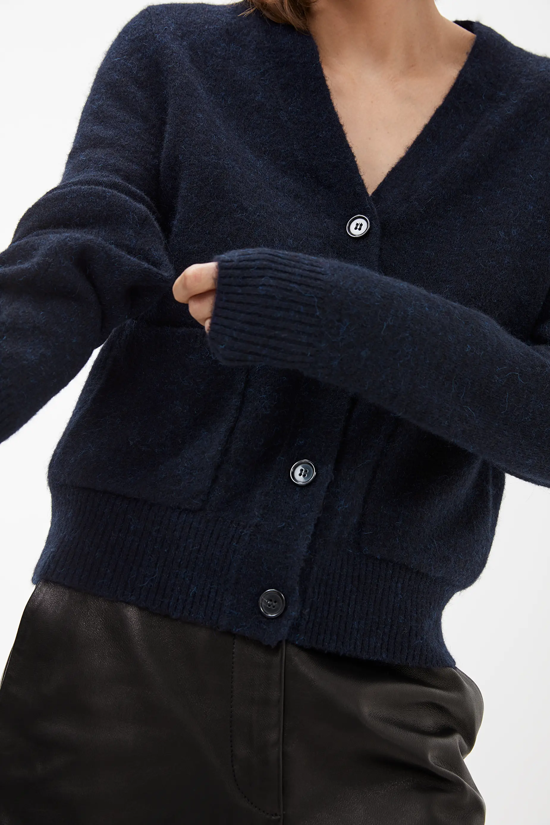 The jacket is made with a firm and compact half milano knit structure from a blend of rws merino wool organic cotton and recycled polyester. Shop at arket for classic knitwear from sustainable materials or choose versatile key pieces like a knit dress or oversized jumper made to last. A knitted outerwear garment with a short and boxy shape flat collar two large patch pockets on the chest and a two way zip to easily adjust the fit and allow for layering.