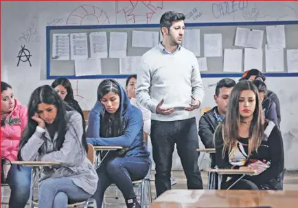 El reemplazante fue una serie de television transmitida por television nacional de chile basada en una historia que gira en torno a un importante empresario que hace quebrar a su empresa y debe trabajar como profesor. Son ellos quienes lo impulsan a rehacer su vida y tomar como desafio ser el reemplazante del profesor de matematicas. El primer encuentro temeroso y frustrado del personaje devenido en profesor en el colegio principe carlos nucleo del desarrollo narrativo en la poblacion contrasta violentamente con las oficinas de sanhattan donde el personaje viviera una suerte de precuela obviada.