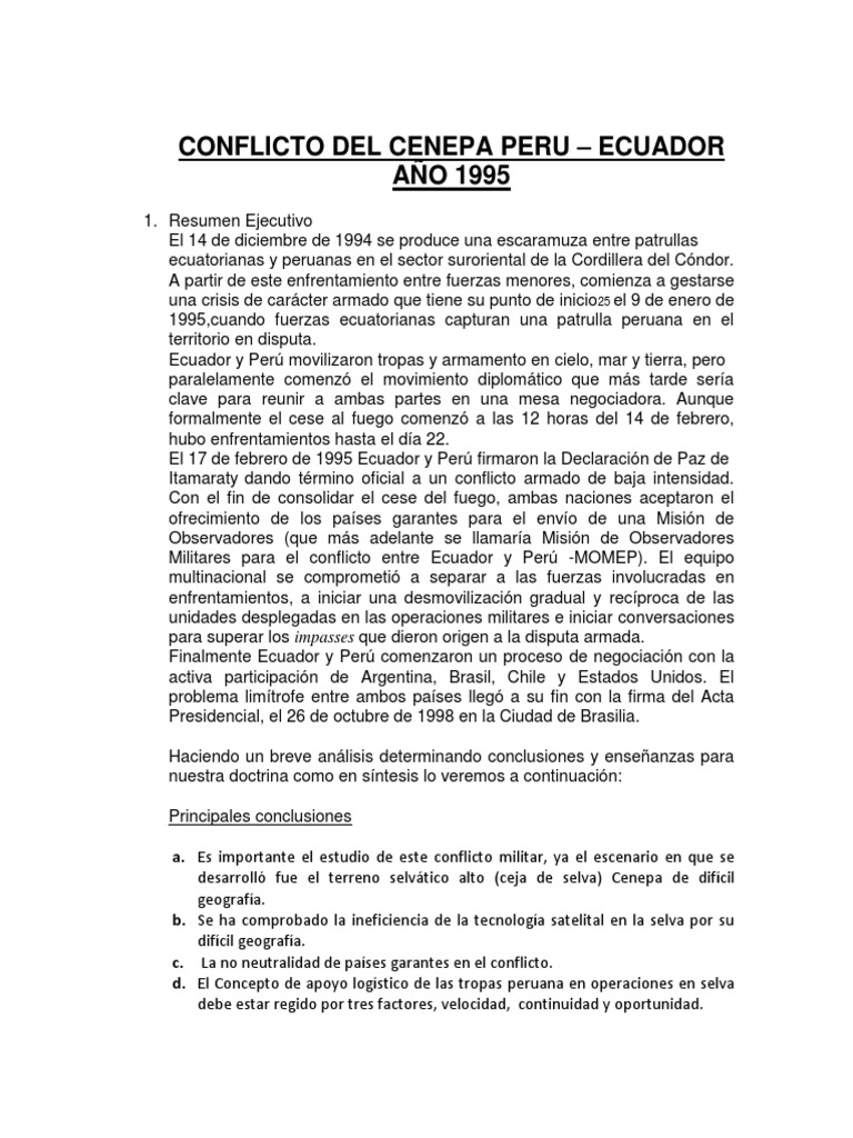 Conflicto Entre Ecuador Y Peru Resumen