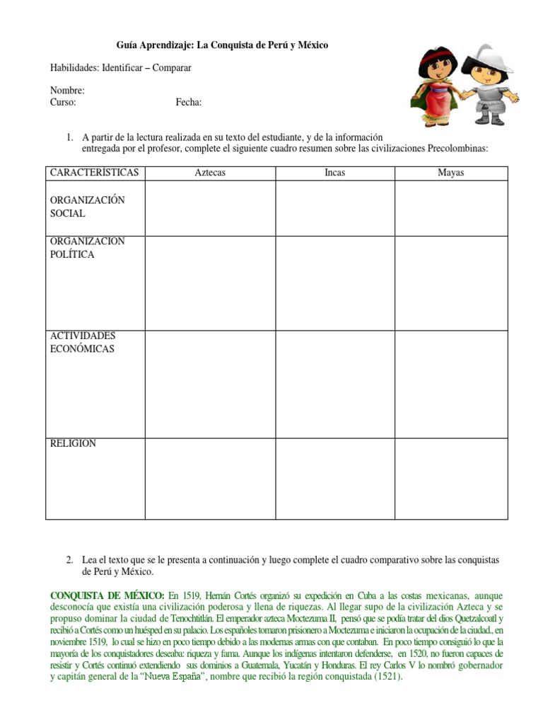 Conquista de mexico y peru cuadro comparativo. En 1519 el conquistador espanol hernan cortes llego a tenochtitlan la capital azteca donde fue bien recibido pues los indigenas pensaron que se trataba de uno de sus dioses. Descubrimiento y conquista de americabr 2. Completa el siguiente cuadro comparativo de acuerdo a los criterios que se indican en la tabla.