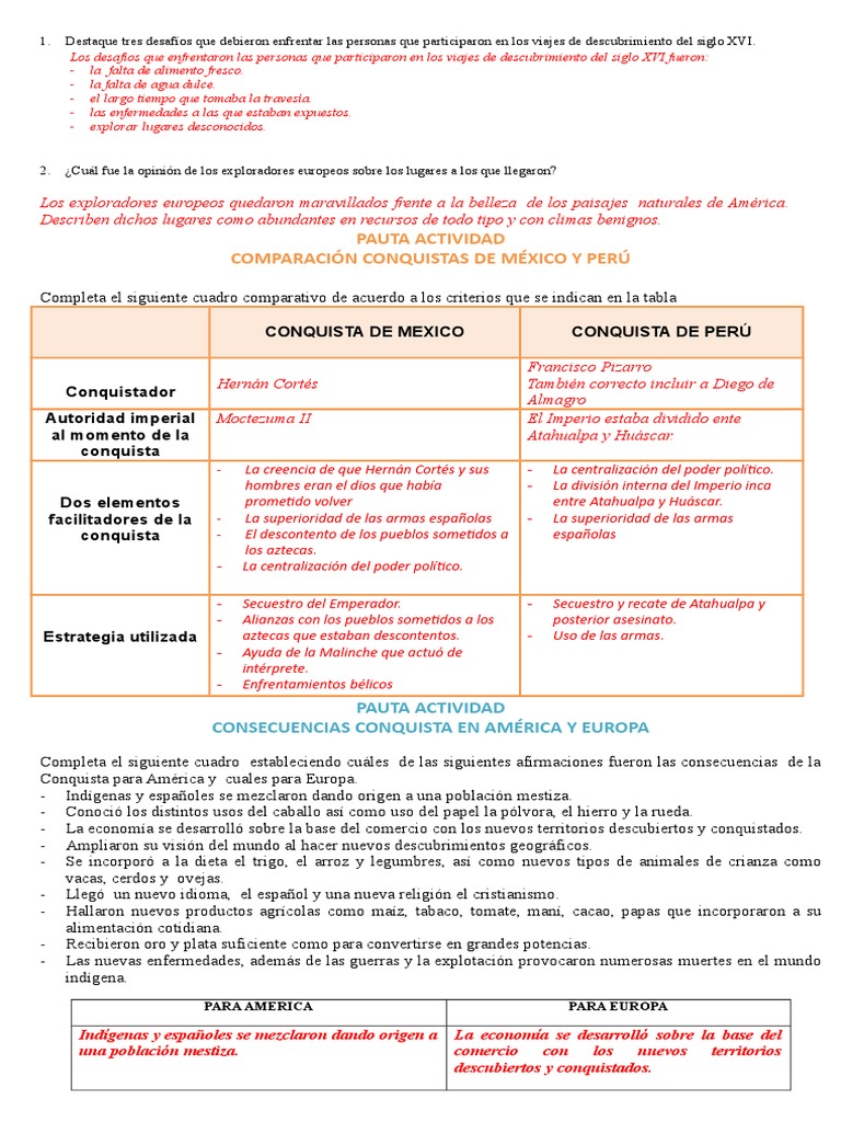 Cristobal colon descubre las islas del caribe la costa de venezuela y america central. Se denomina descubrimiento de america al acontecimiento historico que comenzo con la llegada a americael 12 de octubre de 1492 de una expedicion capitaneada por cristobal colon por mandato de los reyes isabel yfernando de castilla y aragonla expedicion habia partido del puerto andaluz de palos dos meses y nueve dias antes y tras cruzar el atlantico llego a unas islas del. Pauta actividad comparacion conquistas de mexico y peru completa el siguiente cuadro comparativo de acuerdo a los criterios que se indican en la tabla conquista de mexico conquista de peru francisco pizarro conquistador autoridad imperial al momento de la conquista dos elementos facilitadores de la conquista hernan cortes tambien correcto incluir a diego de almagro moctezuma ii el imperio estaba dividido ente atahualpa y huascar.