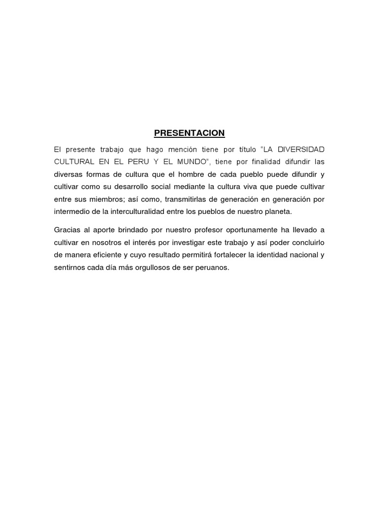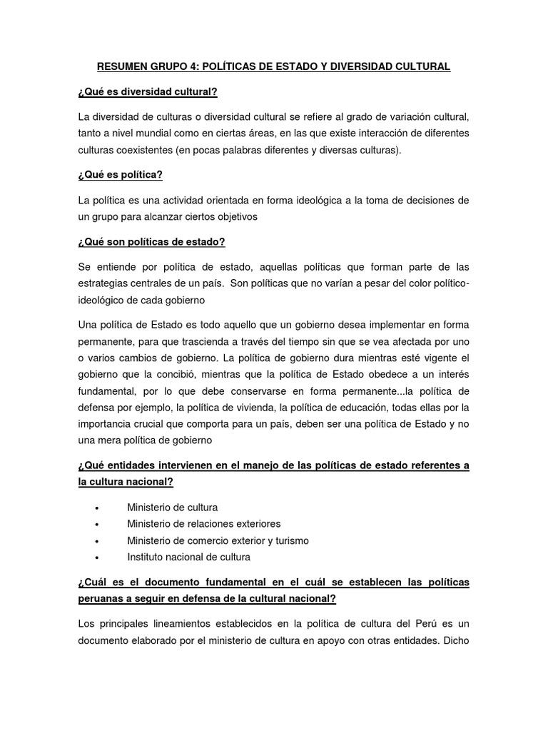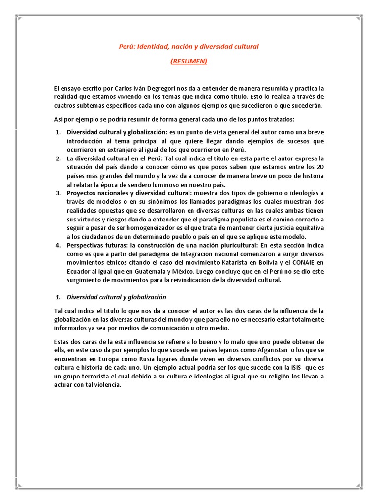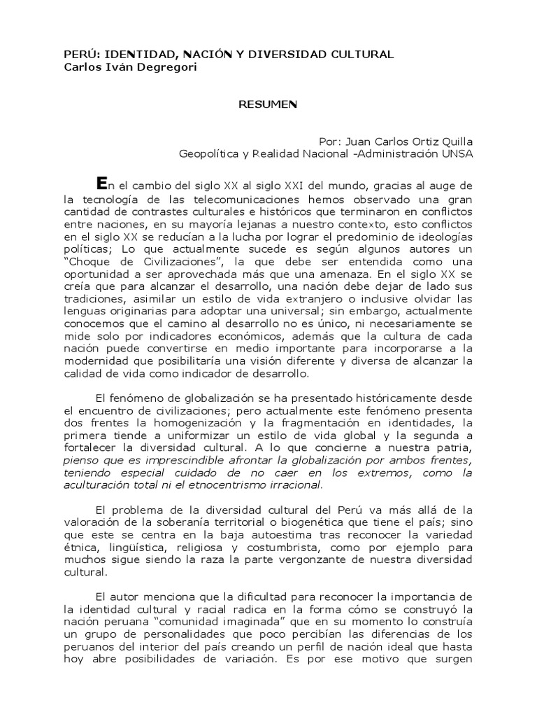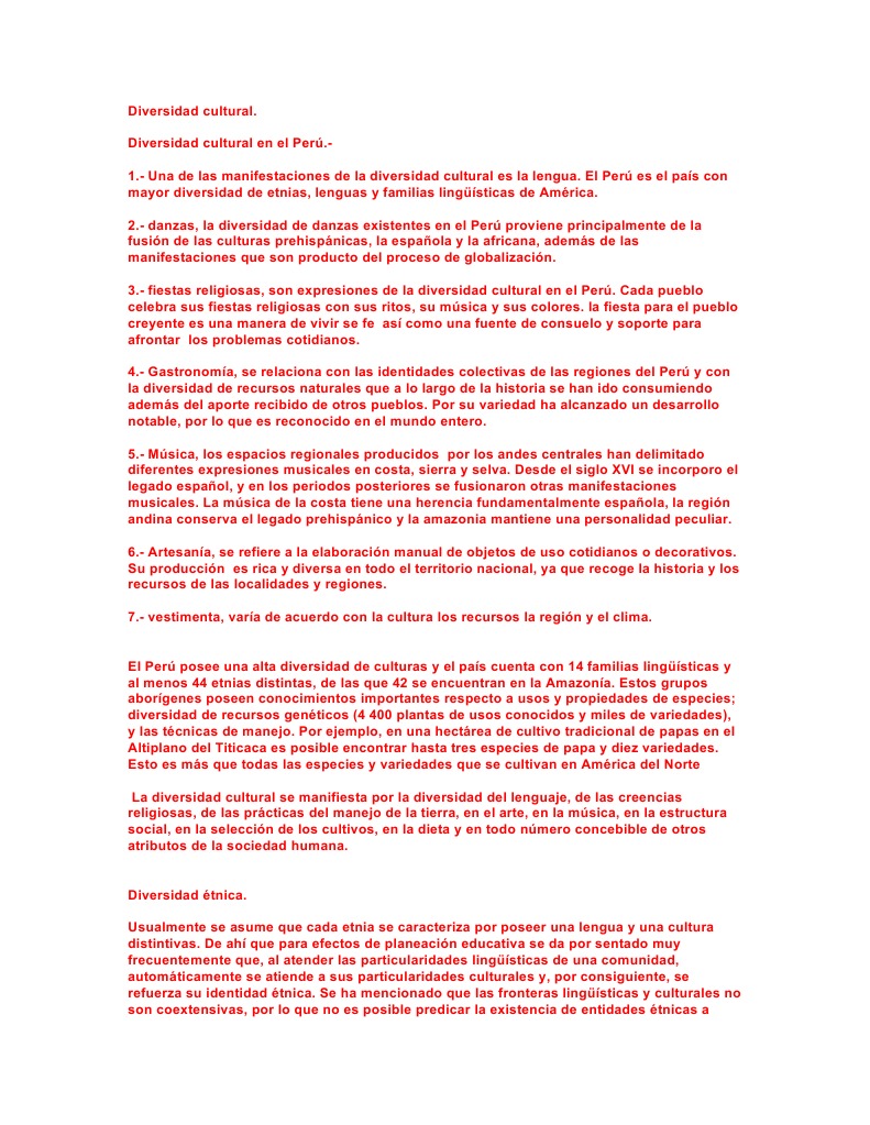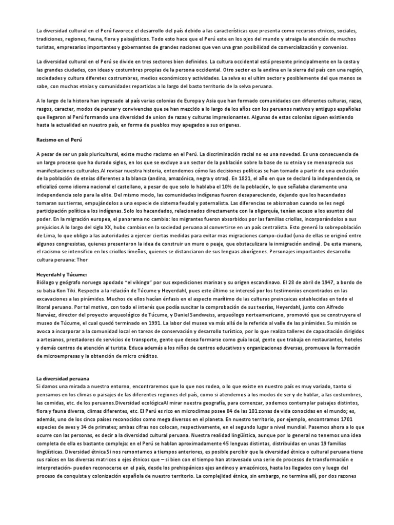 Diversidad Cultural En El Peru Resumen