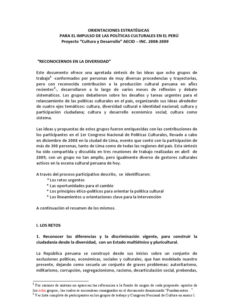 Diversidad cultural en el peru resumen. Somos un pais diverso y nos cuesta reconocerlo. La diversidad cultural en el peru favorece el desarrollo del pais debido a las caracteristicas que presenta como recursos etnicos sociales tradiciones regiones fauna flora y paisajisticos. Rosa margot crespin reyes 2.