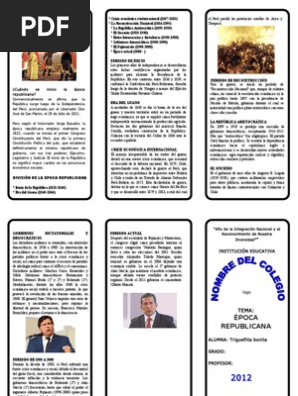 El autor es rene gabriel yepez huaman licenciado en educacion en la especialidad de historia de la unmsm. Para 1974 se calculaba que tenia mas de 1500 obras y en la decada de los ochenta fue condecorado con la orden de las artes y letras en el grado de caballero por la republica francesa 1981 asi como por el gobierno chileno que le impuso la condecoracion bernardo ohiggins en el grado de gran oficial 1987 y en el ano 2011 recibio la. Al periodo de veinte anos que va de 1822 a 1842 el historiador jorge basadre denomina la epoca fundacional de la republica.