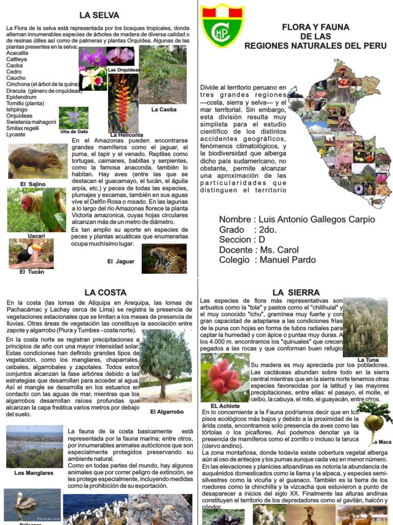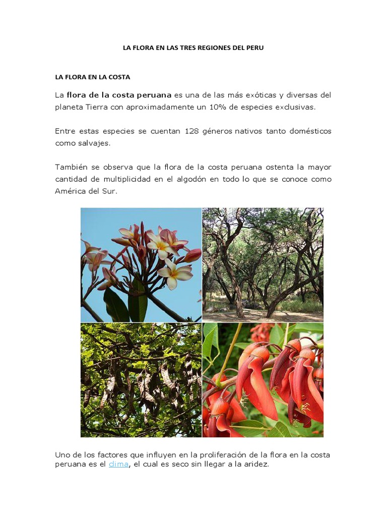 La flora de lima dentro del perimetro urbano esta constituida por una amplia variedad de plantas arbustos y arboles que se pueden apreciar en sus lomas montes colinas y medanos deserticos. Peru con una gran diversidad geografica y climatica del peru que da lugar a las diferentes regiones naturales del pais origina. El peru es un pais situado en america del sur es un pais rico en costumbresculturagastronomiadiversidad de flora y de fauna tenemos a la amazonia como atractivo principal costa sierra y.