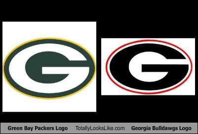 The uga logo is not an exact duplication in shape of the packers logo but was the inspiration and close enough to where uga ad joel eaves requested permission from the packers to proceed with the red and black oval g design. But the georgia version is the one that both teams currently use. That they are very similar indeed 4.