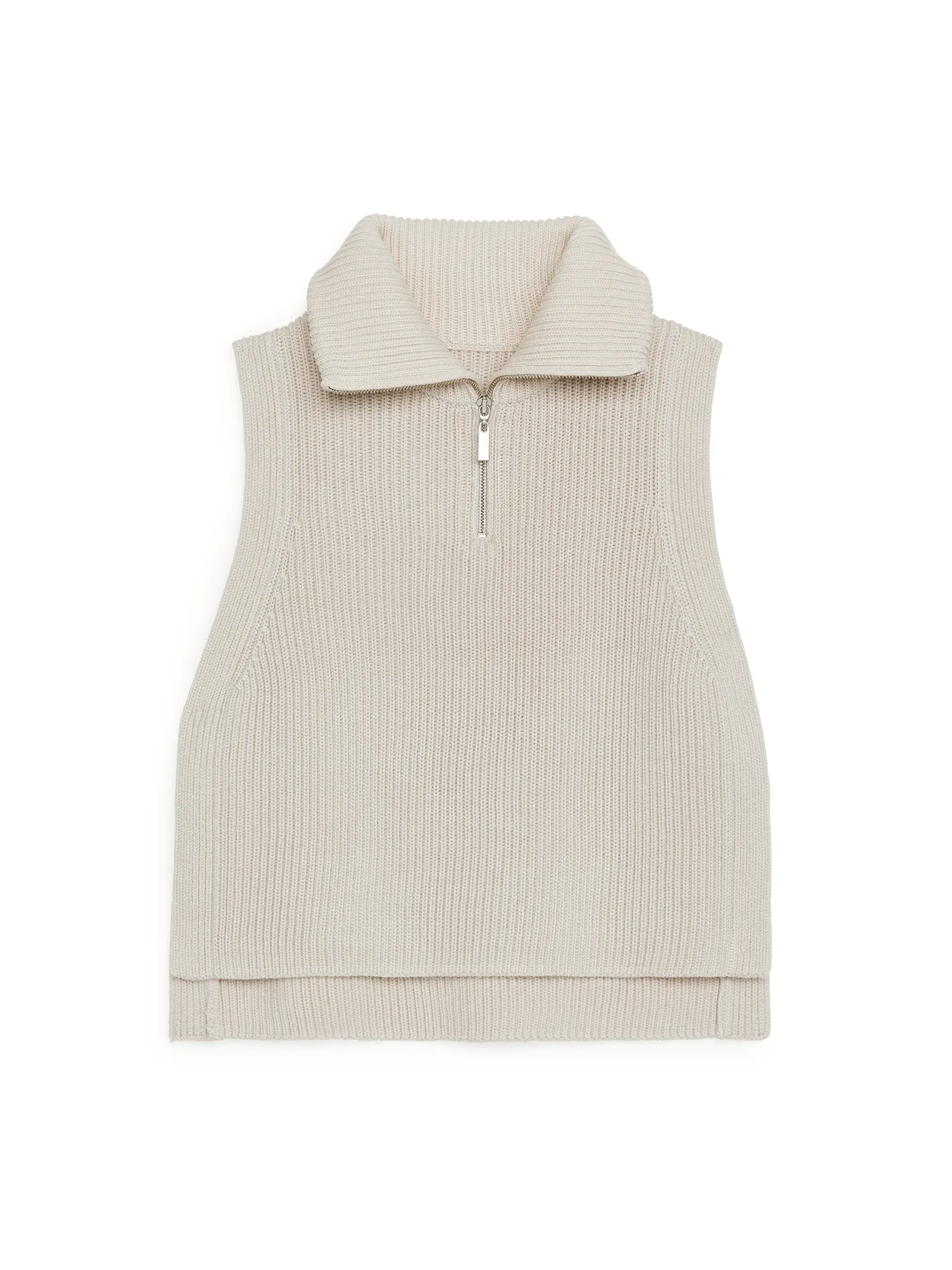 Cut with a regular fit it features a warm high neck with a half zip and built in tie straps on the sides which means that it can be used as a bib neck or as a vest. 5 gauge full cardigan stitch the wool comes from non mulesed sheep and is certified according to the responsible wool standard cu 862581 an independent voluntary. Half zip merino bib beige knitwear arket gb.
