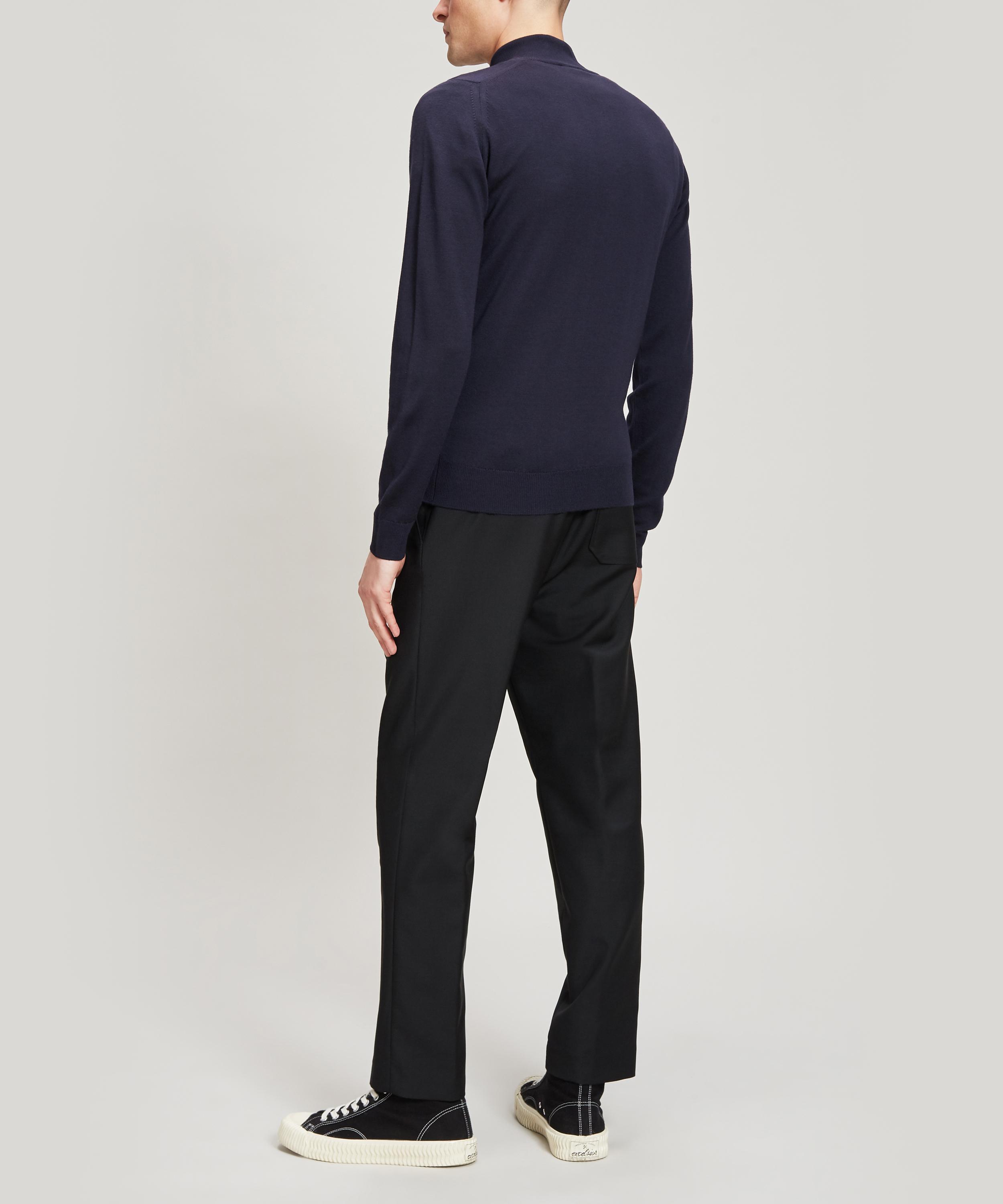 5 gauge full cardigan stitch the wool comes from non mulesed sheep and is certified according to the responsible wool standard cu 862581 an independent voluntary standard ensuring that wool from certified farms is properly identified and tracked through all processing stages. 5 gauge full cardigan stitch the wool comes from non mulesed sheep and is certified according to the responsible wool standard cu 862581 an independent voluntary standard ensuring that wool from certified farms is properly identified and tracked. Cut with a regular fit it features a warm high neck with a half zip and built in tie straps on the sides which means that it can be used as a bib neck or as a vest.