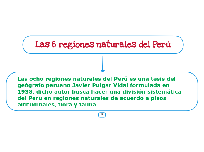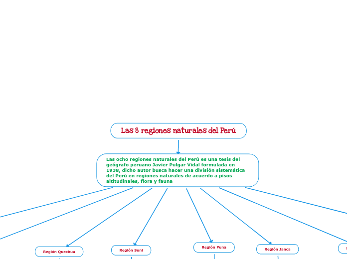 Se emplaza por las partes mas altas este conjunto orografico entre las latitudes 80s y 300s aproximadamente cubriendo territorios del centro y sur del peru el noreste de chile el occidente de bolivia y el noroeste de argentina. Mapa conceptual de las 8 regiones del peru gratis 8 regiones naturales del peru. Las ocho regiones naturales del peru es una tesis del geografo peruano javier pulgar vidal formulada en 1938 dicho autor busca hacer una division sistematica del peru en regiones naturales de acuerdo a pisos altitudinales flora y faunalas indicaciones altitudinales cambian levemente entre las diferentes ediciones de su obra y deben ser entendidos como orientacion.