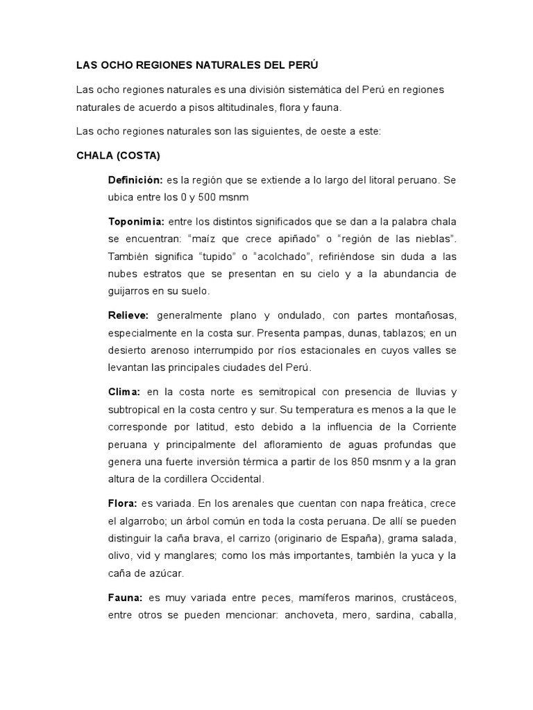 Las Ocho Regiones Naturales Del Peru Para Completar