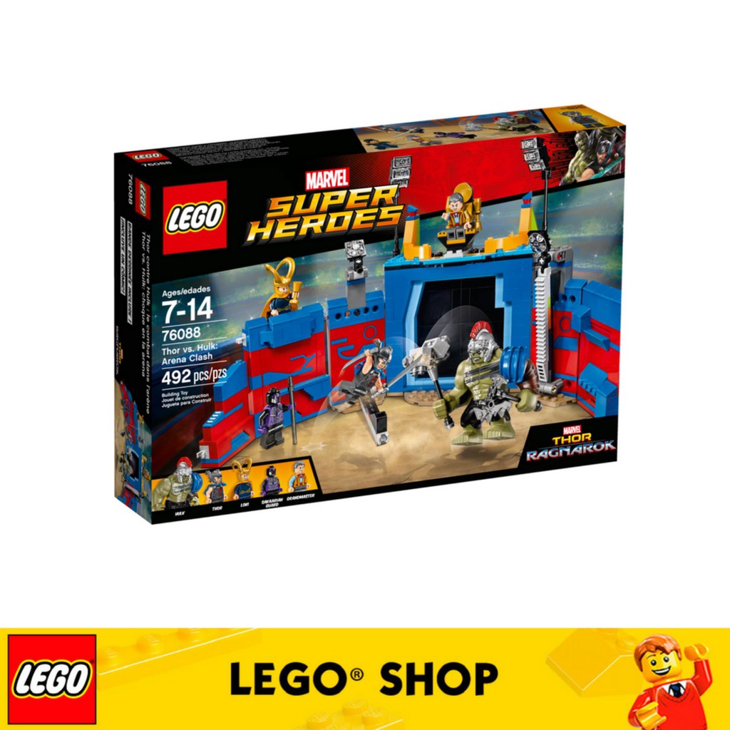 Lego thor ragnarok thor vs hulk arena clash. Today i review the lego set thor vs hulk arena clash. This awesome lego marvel super heroes thor vs. Arena clash set features an arena with a sliding gate secret weapons rack 2 toppling pillars smash function wall and an opening prison cell.