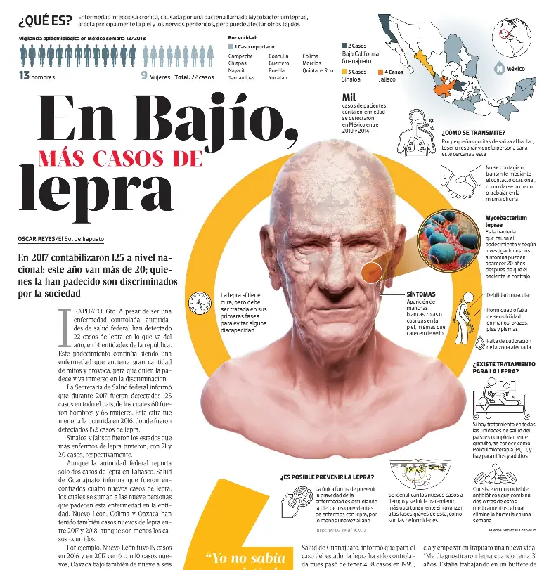 Sinaloa es la entidad con mas casos acumulados de lepra al registrar 32 acumulados de acuerdo con el boletin epidemiologico de la semana 40 27 de septiembre al 3 de octubre. Si se trata en las primeras fases se puede evitar la discapacidad. Tu trabajo los hijos la escuela tu jefe y tu.
