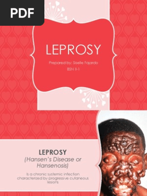 Leprosy also known as hansens disease hd is a long term infection by the bacteria mycobacterium leprae or mycobacterium lepromatosis.
