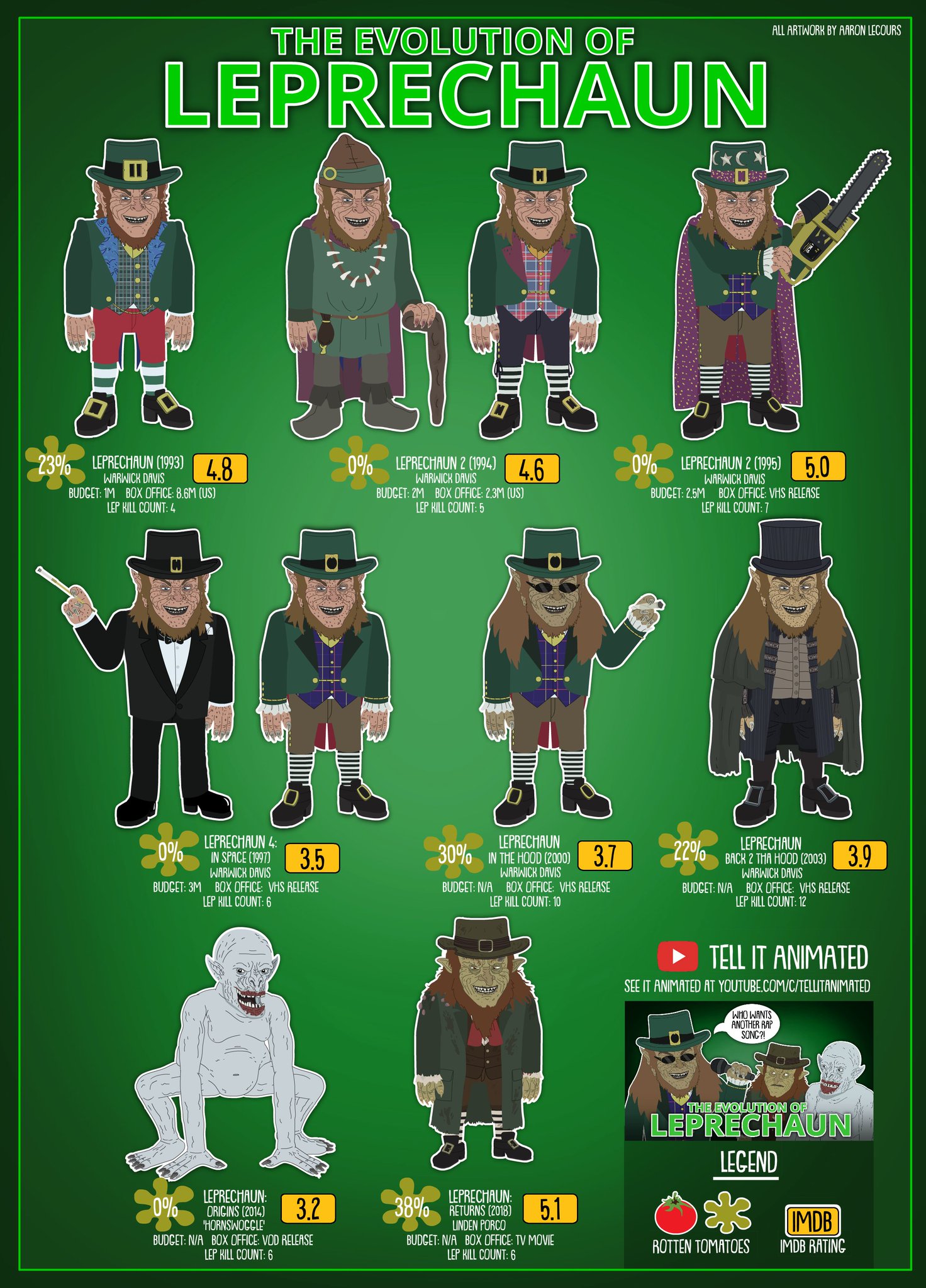 Leprechaun in the hood 2 budget. Leprechaun in the hood also known as leprechaun 5 or leprechaun 5. It is the sixth installment of the leprechaun series and as of now the last entry in the franchise to star warwick davis as the leprechaun. The film has the villainous leprechaun rampaging through an urban area and killing anyone in his path while.