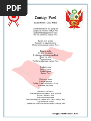 Cuando despiertan mis ojos y veo. La letra de contigo peru de arturo zambo cavero ha sido traducida a 3 idioma s cuando despiertan mis ojos y veo que sigo viviendo contigo peru emocionado doy gracias al cielo por darme la vida contigo peru eres un grande y lo seguiras siendo pues todos estamos contigo peru sobre mi pecho llevo tus colores y estan a mis amores contigo peru somos tus hijos y nos uniremos y asi triunfaremos contigo peru unida la costa unida la sierra unida la selva contigo peru unido el trabajo. Letra de esta es mi tierra.