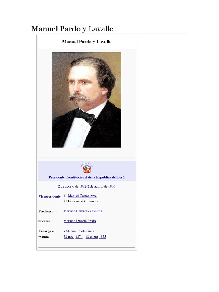 Manuel prado y ugarteche 1889 1967 fue presidente de la republica del peru entre 1939 1945 y 1956 1962. Fue hermano del heroe leoncio prado y de los tambien politicos javier prado y pedro prado. Manuel carlos prado y ugarteche lima 21 de abril de 1889paris 15 de agosto de 1967 fue un politico peruano que ocupo la presidencia del peru en dos ocasiones.