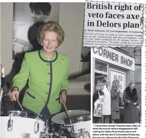 On 31 may 1990 six months before being squeezed from office margaret thatcher paid a visit to abbey road. When margaret thatcher visited abbey road studios in what would prove to be the final year of her premiership she may have hoped rubbing shoulders with a music legend would boost her flagging. Margaret thatcher played the drums during her visit to the abbey road studios in 1990.