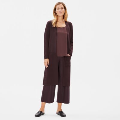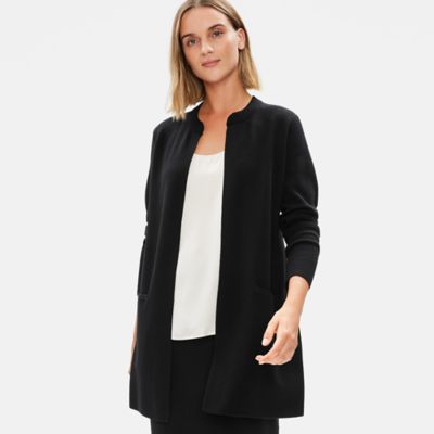 Luxury that starts with our new responsible wool. Plush and luxurious to the touch in our responsible wool. The long clean lines of our cardigan in a stretchy merino knit.
