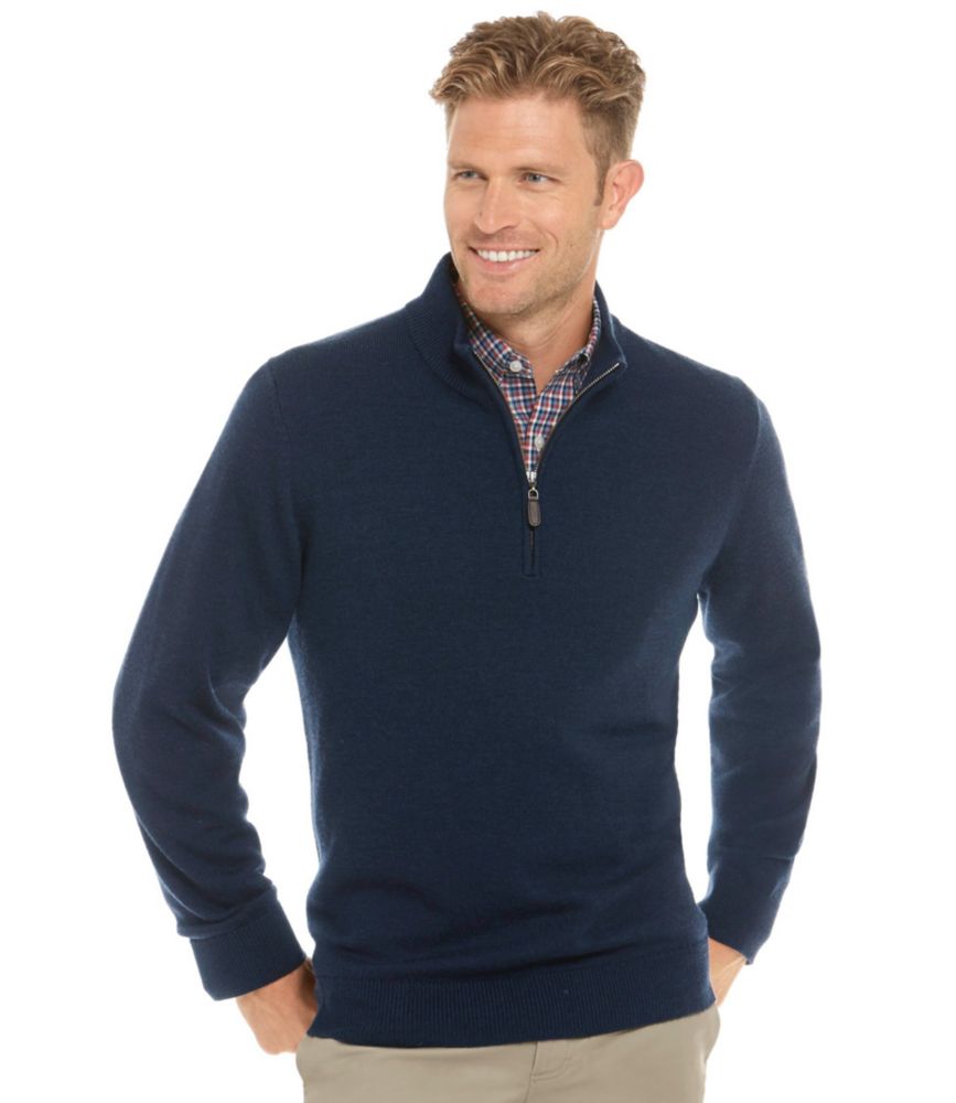 Merino wool quarter zip sweater mens. Stand collar quarter zip. Help conserve energy and natural resources with recycling and the use of recycled products55 merino wool 45 recycled polyesterquarter zip closurestandup collarribbed knit cuffs and hemjacquard knitmodern fitmade with recycled polyesterjoseph abboudimporteddry clean only. The sweater is artfully knitted in soft merino wool with rows of traditional aran honeycomb trellis and irish moss stitches each thought to symbolize good luck and good fortune.