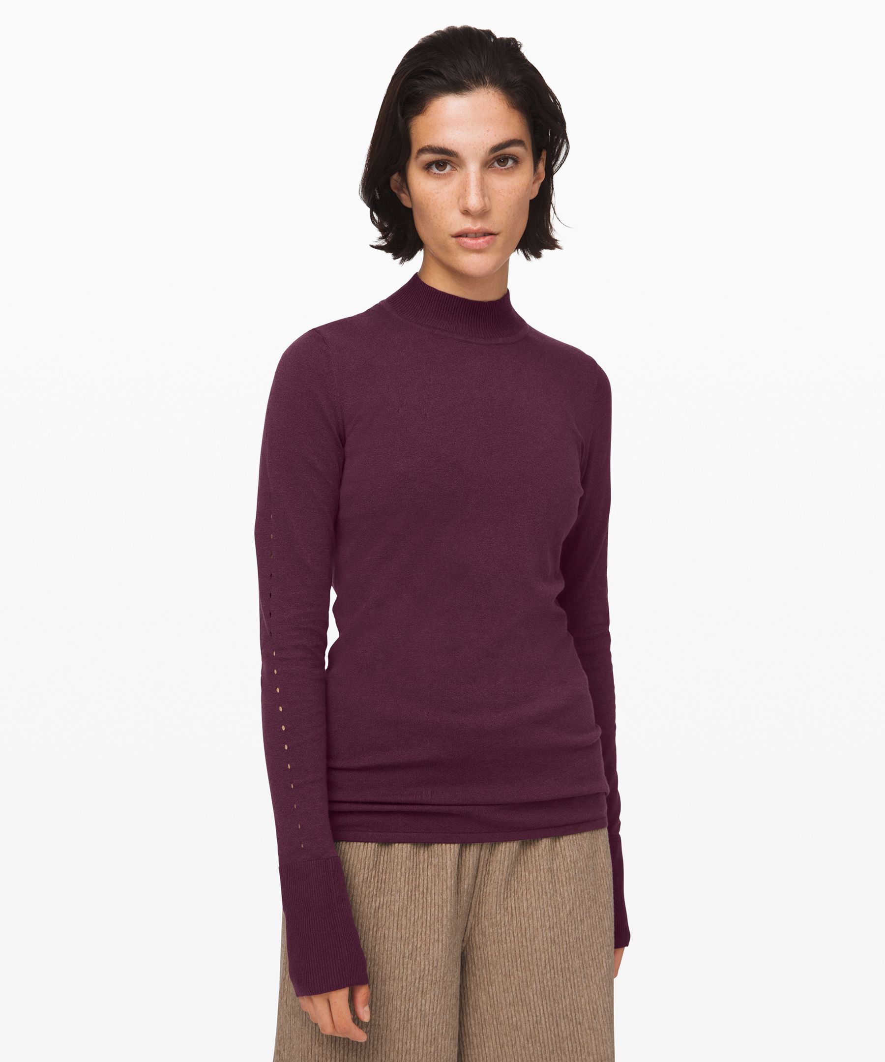You wont see many merino wool pants or sports apparel on the market and you will see a lot of holes in merino shirts elbows because its not that stretchy and eventually breaks. Sure its more durable than the wool sweater your granny knit for you but it isnt durable compared to whatever youre wearing now. Lululemon sz 6 purple open knit zipper sides 100 wool cardigan sweater 122w.