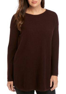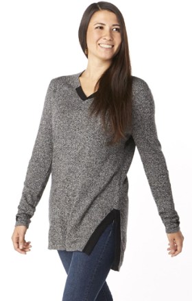 This tunic has 34 inch sleeves a lovely flange detail above the hemline and side vents for a layered effect and super cozy feel.