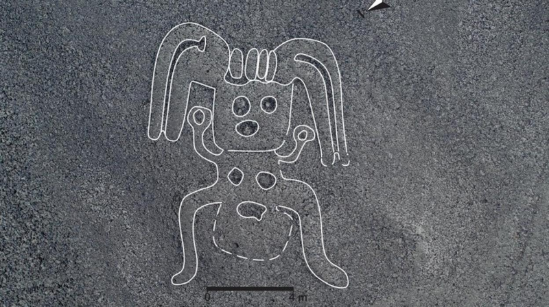 Afortunadamente los trabajos de remodelacion que se estan llevando a cabo en el mirador una colina rocosa en la que confluyen numerosos geoglifos que se pueden. El nuevo geoglifo hallado en nazca peru la figura que se hizo unos doscientos anos antes de nuestra era muestra al animal mirando al frente y sentado de costado alvaro. El gato gigante mide especificamente 37 metros.