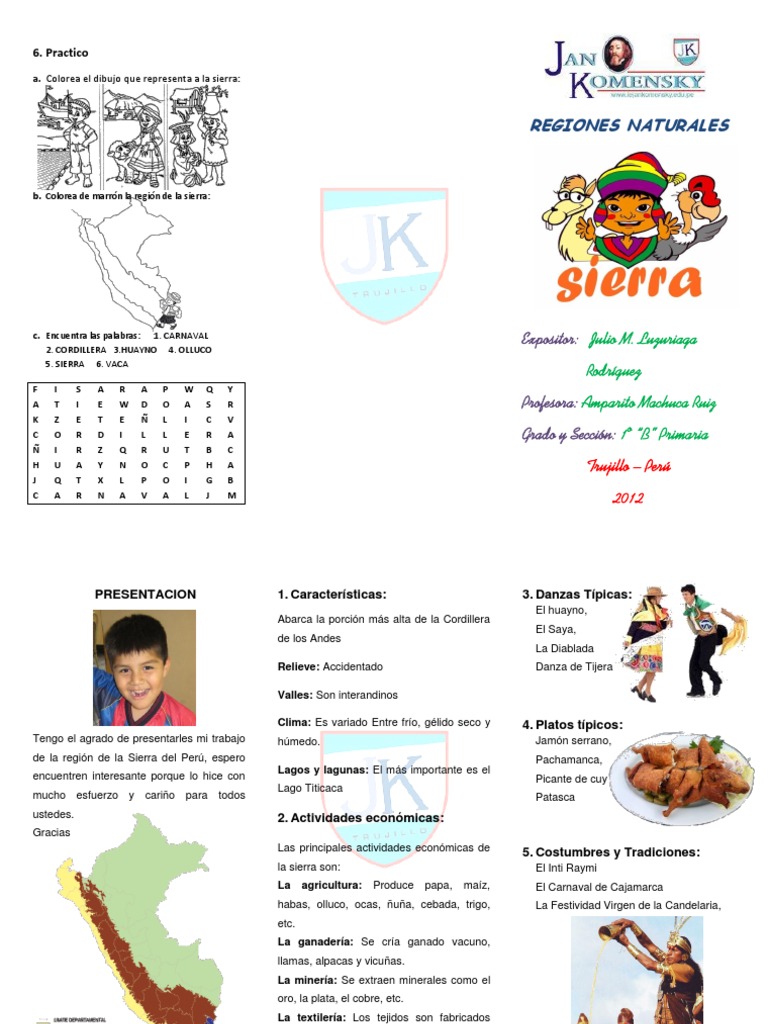 En esta seccion te mostraremos algunas de las actividades de el peru y sus regiones naturales para ninos de 6 u 7 anos de edad que se encuentran en primer grado de nivel primario encontraras actividades como. Formato word opcion a y formato pdf opcion bpuedes elegir cualquiera de estas opciones. Las cuatro regiones naturales produce el pltano aguaje etc.