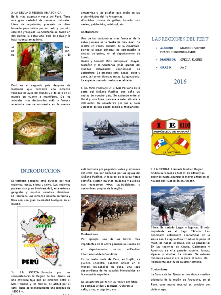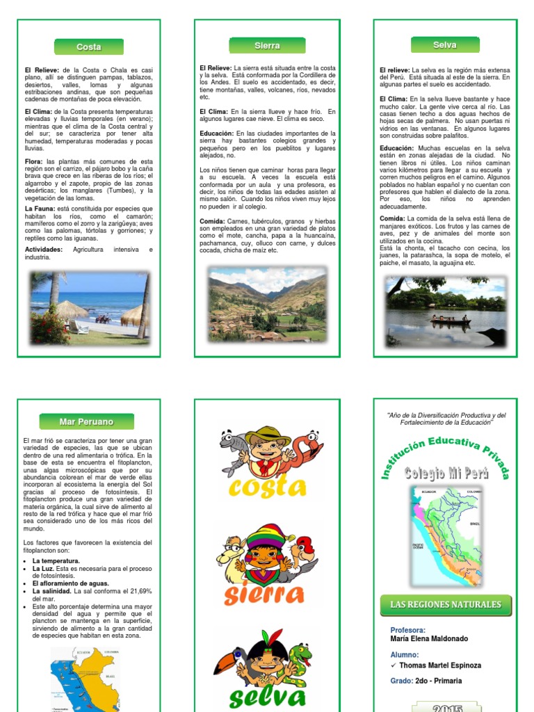 Para Ninos Triptico De Las 4 Regiones Del Peru