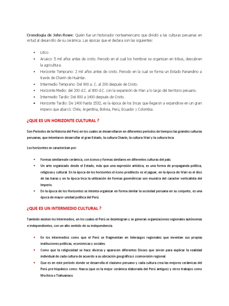 Periodificacion del peru antiguo segun luis lumbreras. Historia del peru antiguo. Periodificacion del peru antiguo segun john rowe se basa en la evolucion ceramica 9000 ac.