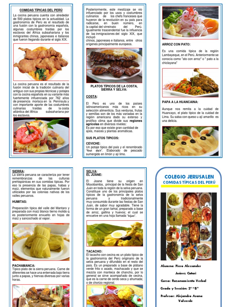 A continuacion te contaremos mas sobre estos y otros platillos de la cocina tipica de. Peru reune una gran cantidad de sabores y colores que haran bailar a tus papilas gustativas. O peru e um pais que possui uma culinaria muito rica e variada.