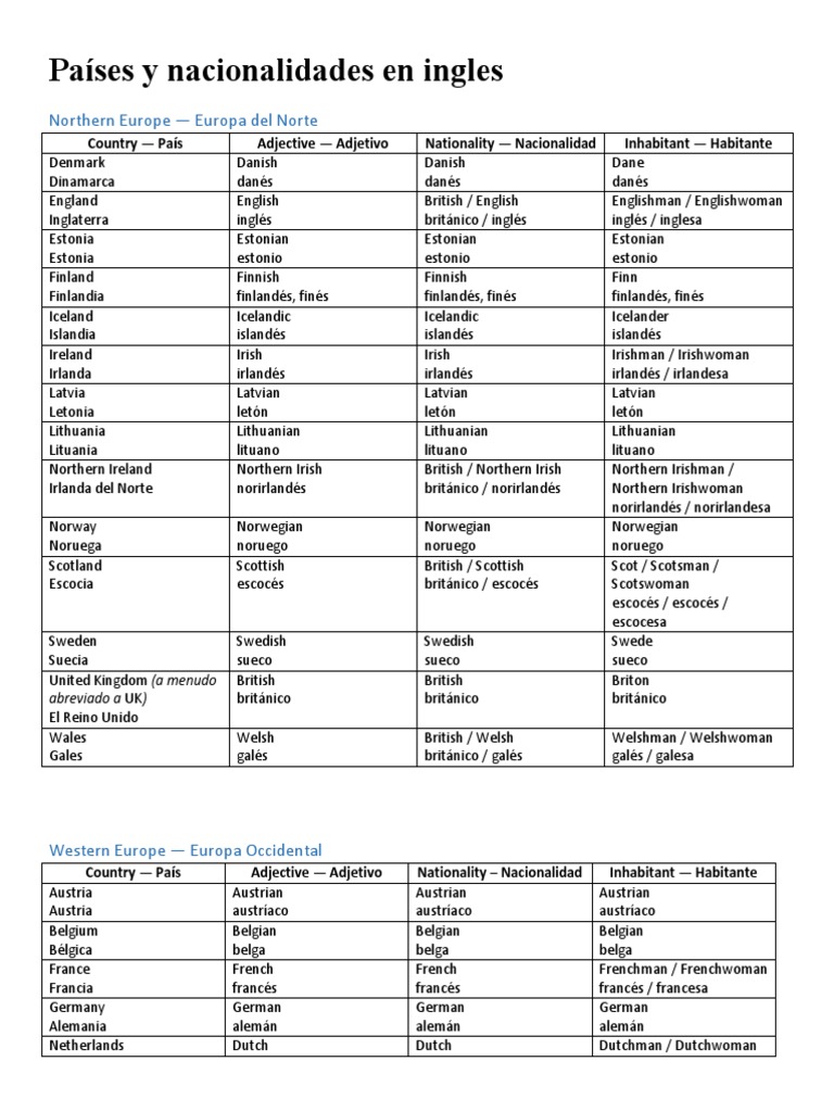 Para hablar de las nacionalidades nationalities en ingles se puede usar un adjetivo o un sustantivopara muchas nacionalidades como las que terminan en an estas dos formas son iguales como en el caso de americanpara otras las cosas no son tan faciles. Paises y nacionalidades en ingles empezamos con la cuna de la lengua inglesa con un un poco de informacion sobre las islas britanicas el reino unido e irlanda. Los paises en ingles.
