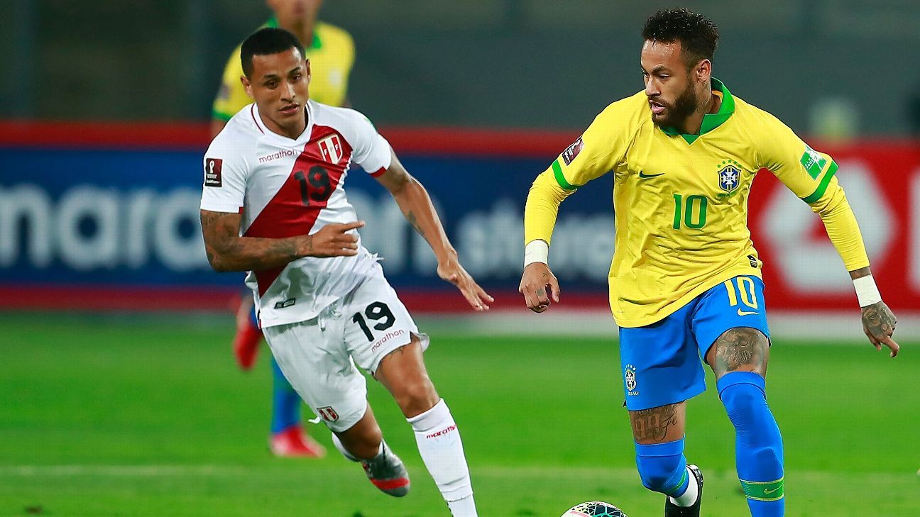 Brasil liderado por un neymar que marco tripleta remonto y vencio por 2 4 a peru en lima este martes en la segunda jornada de las eliminatorias sudamericanas del mundial de catar 2022.