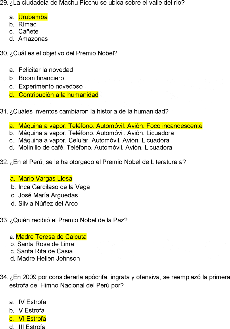 Preguntas De Cultura General Peru 2020