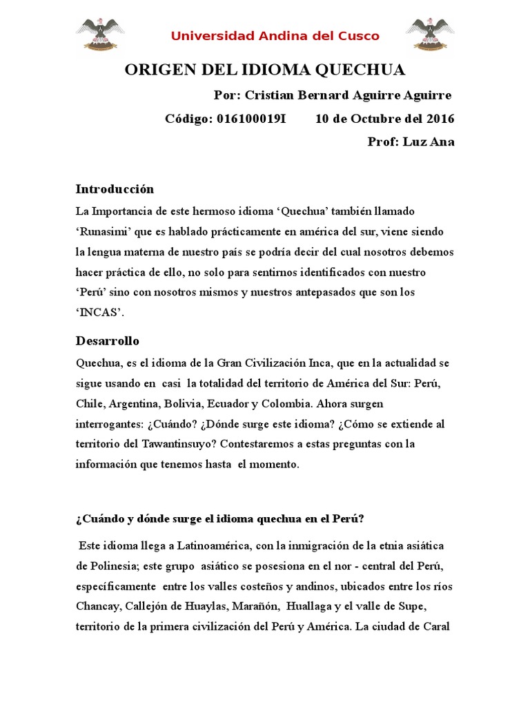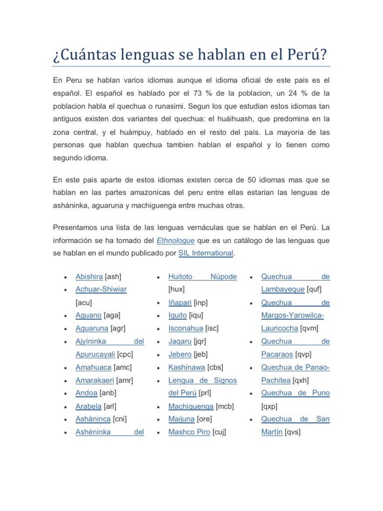 Quechua idiomas del peru. Quechua idioma oficial del peru has 16515 members. Centro de ensenanza aprendizaje debate sobre el idioma quechua lengua del imperio inca. Es un concepto con varios usos que parten de una misma referencia.
