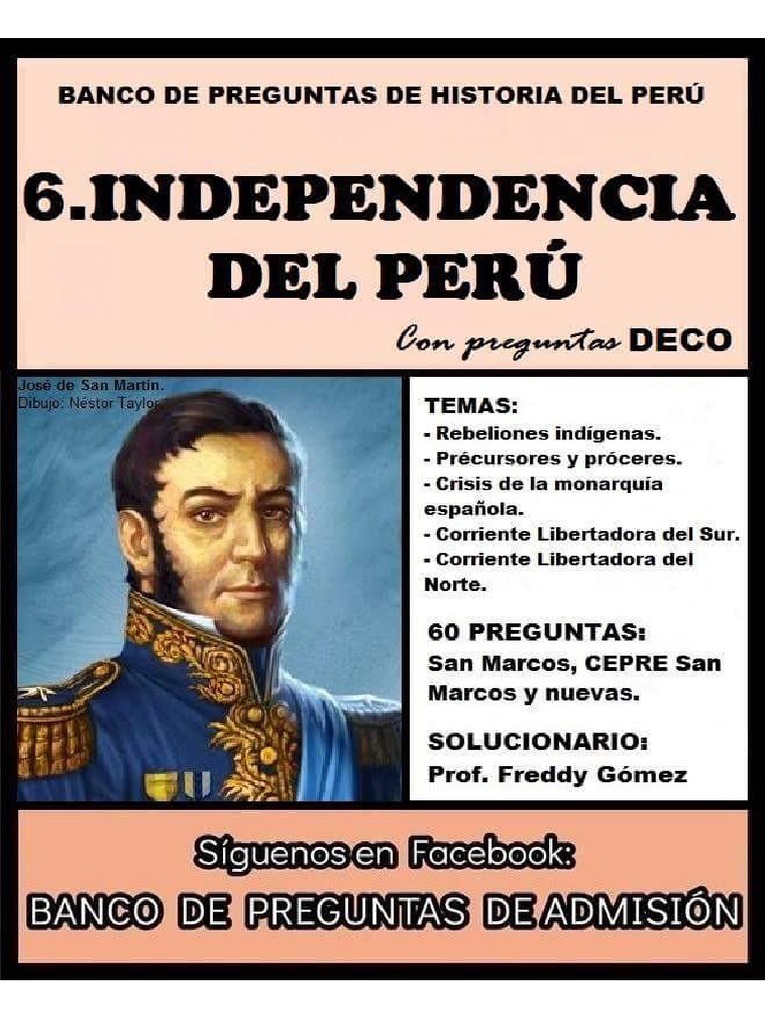 La independencia de peru fue un proceso en el que san martin y bolivar tuvieron roles esenciales e irremplazables. Y el mismisimo jose de san martin. La independencia del peru fue un proceso politico ocurrido durante los primeros anos del siglo xix en el antiguo virreinato del peru o de limacomenzo aproximadamente sobre el ano 1810 con las primeras revueltas organizadas por logias masonicas que buscaban iniciar la revolucion liberal en el peru movimientos que fueron sofocados rapidamente.