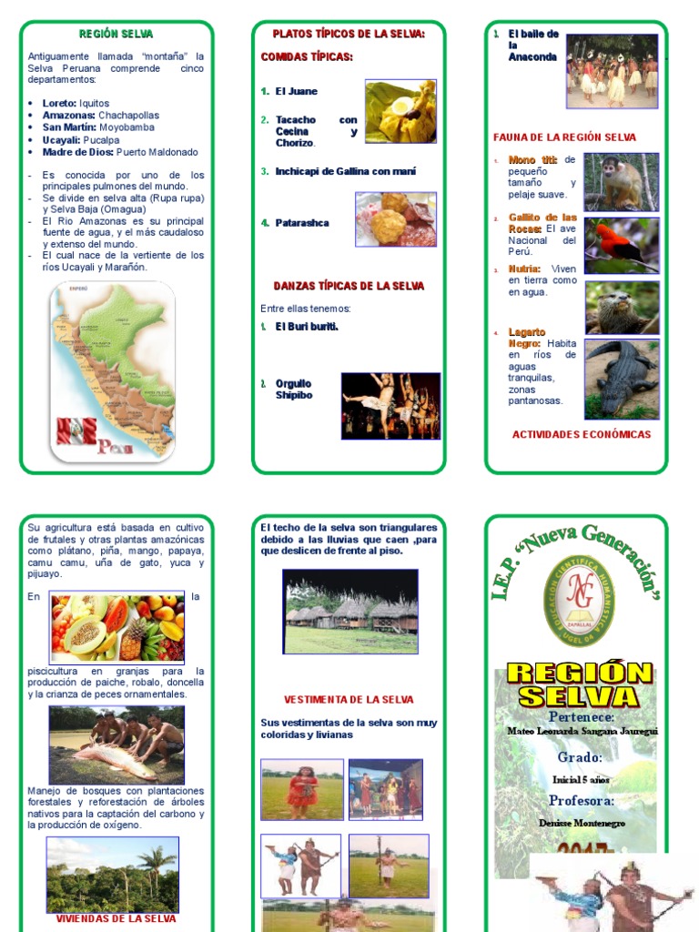 Triptico las regiones naturales del peru y sus recursos luz angelica villanueva escalante. Y como es de esperarse sus paisajes son la atraccion turistica mas destacada. Peru es uno de los paises mas ricos en flora y en fauna tiene muchas variedades y especies ineditas para el mundo.