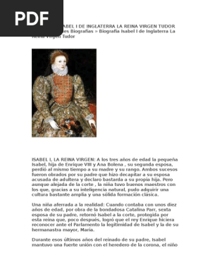 Isabel i de castilla madrigal de las altas torres 22 de abril de 1451 medina del campo real palacio testamentario 26 de noviembre de 1504 fue reina de castilla a desde 1474 hasta 1504 reina consorte de sicilia desde 1469 y de aragon desde 1479 2 por su matrimonio con fernando de aragontambien ejercio como senora de vizcayase la conoce tambien como isabel la catolica. Isabel la reina 04 dic 2014 una semana despues del emotivo episodio final de la serie isabel la 1 de tve emitira un capitulo especial sobre la vida de la reina mas importante de la. Isabel fue la quinta y ultima monarca de la dinastia tudorhija de enrique viii nacio como princesa pero su.