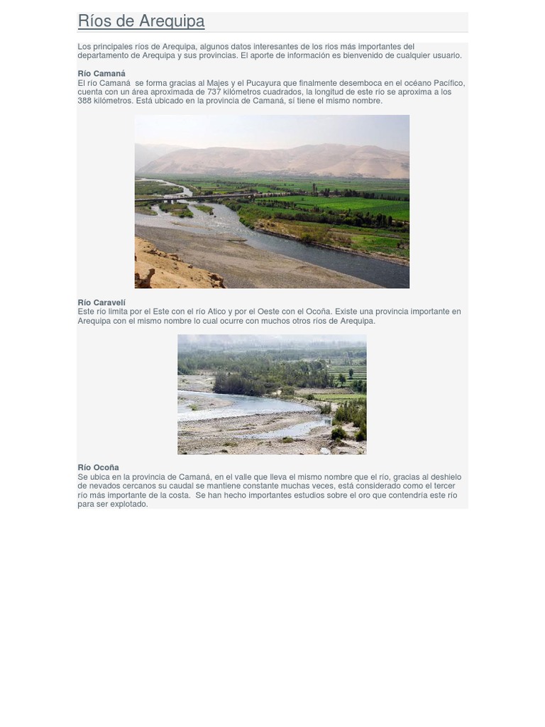 1 se puede oir el rio a medida que descendemos en el canon del colca segun vamos bajando podemos ver todos sus remolinos y corrient. Rios del peru amigasos en esta oportunidad les traigo informacion sobre los rios mas importantes que recorren territorio peruano y que puede ser de utilidad al momento de hacer tareas o simplemente para ganar mayor informacion sobre este tema. Al nacer en la altura tienen fuertes pendientes y segun la estacion del ano pueden ser muy caudalosos o quedarse secos.