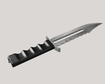 Its pretty much just a military grade knife but more futuristic as it contains a vibrating blade. I bet you could easily have one made by a knife maker. You see it vibrating if you look closely to a few shots.
