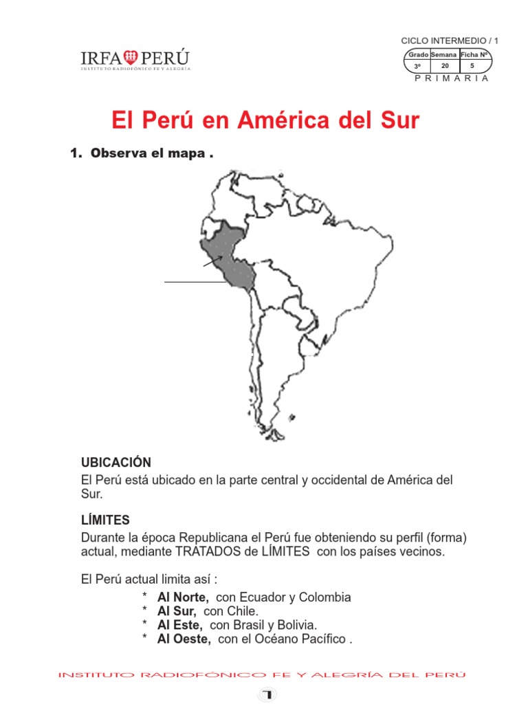 Puedes hacer los ejercicios online o descargar la ficha como pdf. Ubicacion en america del sur parte central y occidental de america del sur la republica del peru es uno de los mas importantes focos de atraccion cultural y turistica en el mundo.
